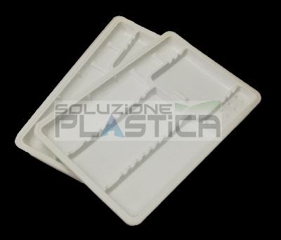 Pz 400 - Vassoi monouso con fondello zigrinato e appositi alloggiamenti ideati per posizionare al meglio la strumentazione.